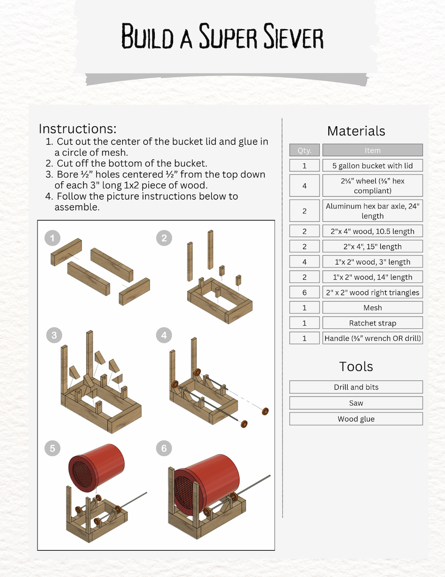 These are the 100% free build instructions for our Super Siever so that you can build your own. Enjoy!